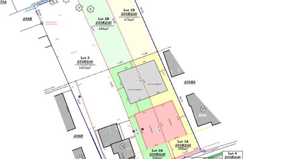 Mooie bouwgrond voor halfopen bebouwing . (lot 1A+1B: 1072m²)