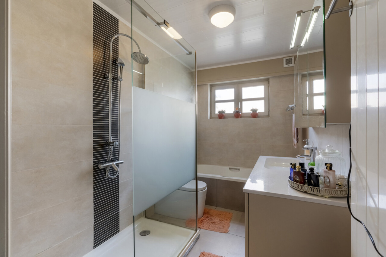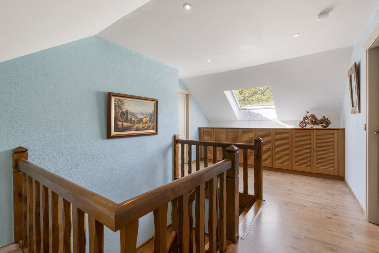 De woning (1987) biedt een lichtrijke woonkamer, ingerichte keuken en gezellige veranda met zicht op de tuin. Met drie slaapkamers, waarvan één op het gelijkvloers, én een badkamer beneden is dit een comfortabele woning waar u jarenlang kan blijven wonen. Verder zijn er praktische bergruimtes en een kelder. Zonnepanelen (nog 3 jaar groenestroomcertificaten) en elektrische rolluiken zorgen voor extra energiezuinigheid en comfort.