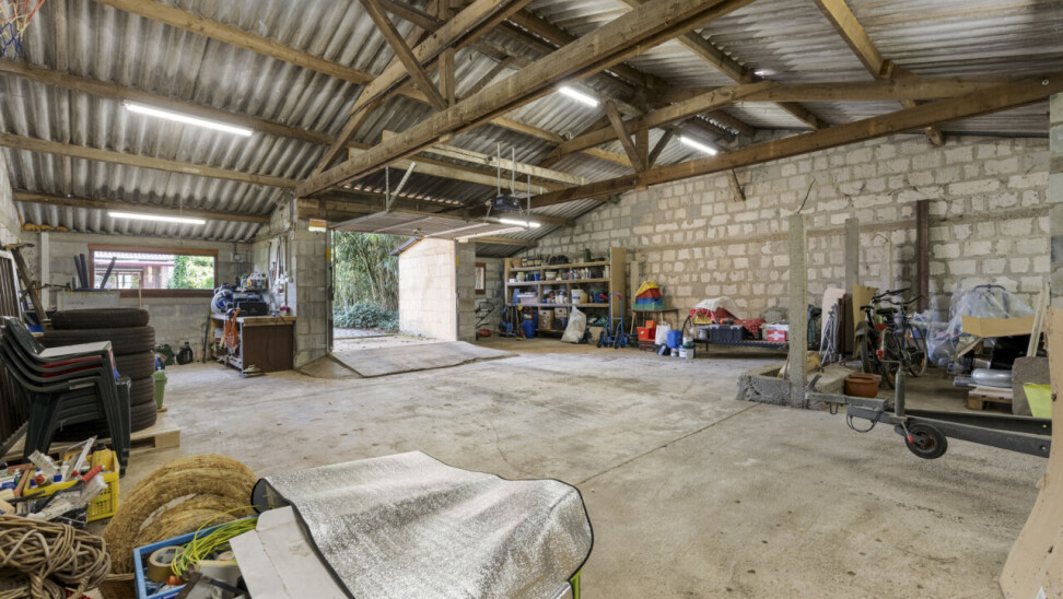 Het grote, vergunde bijgebouw met tweede oprit is ideaal als atelier, garage of hobbyruimte.