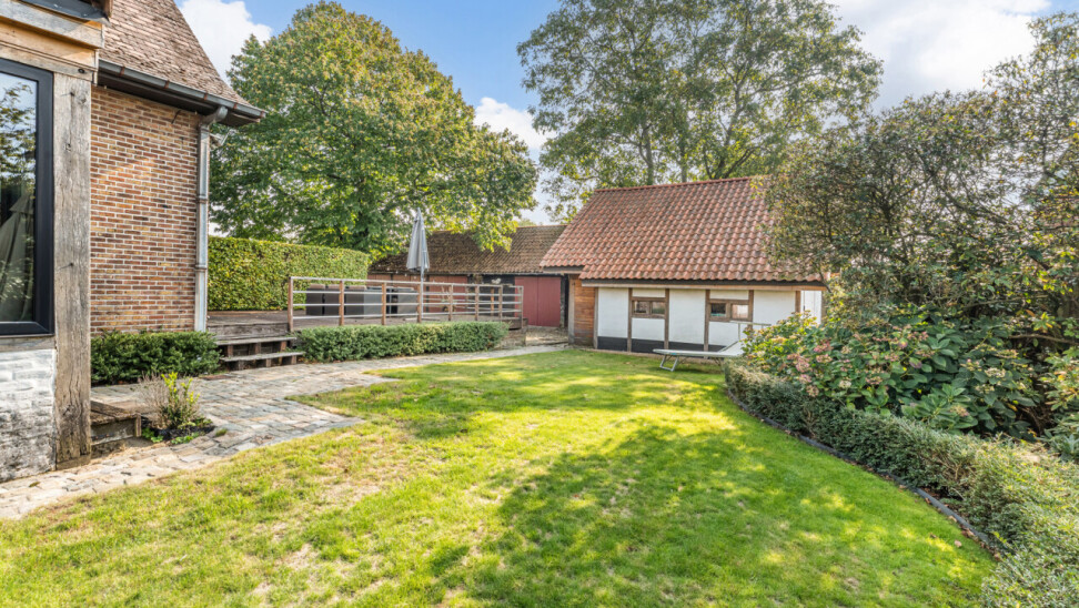 Buiten geniet u van een zonnige tuin met enkele fruitbomen en een ruim terras, ideaal om in alle rust te ontspannen.