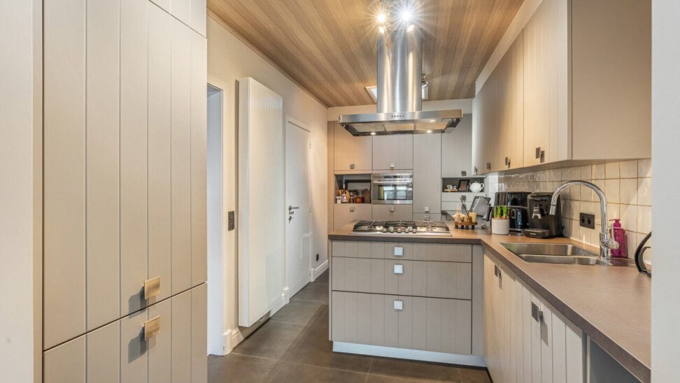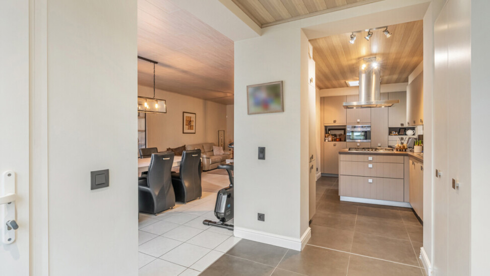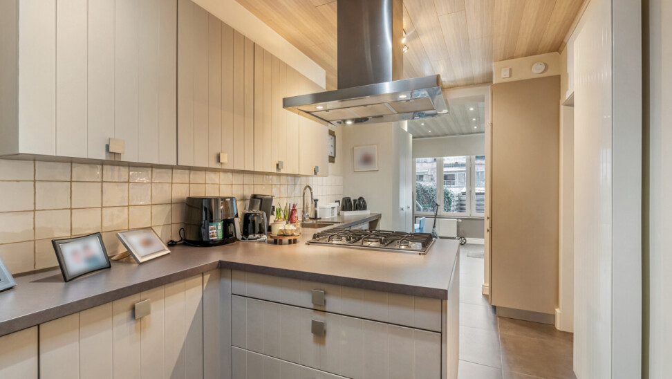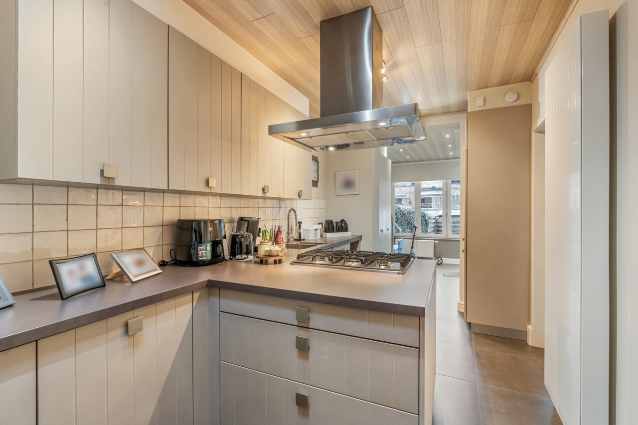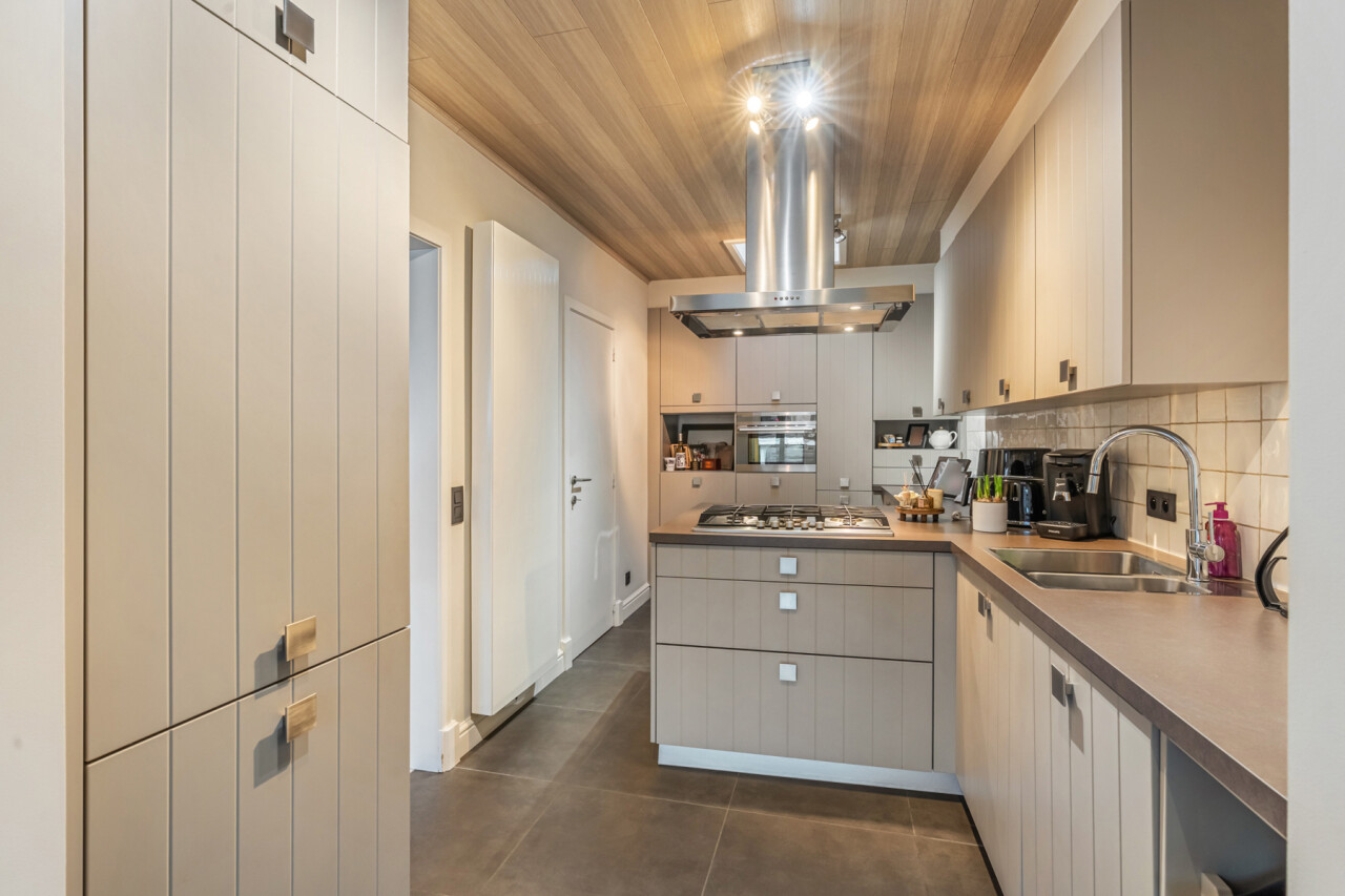 De halfopen keuken werd zeer recent vernieuwd en amper gebruikt. Ze beschikt over alle nodige en hedendaagse toestellen. Vanuit de keuken is er toegang tot de kelder.