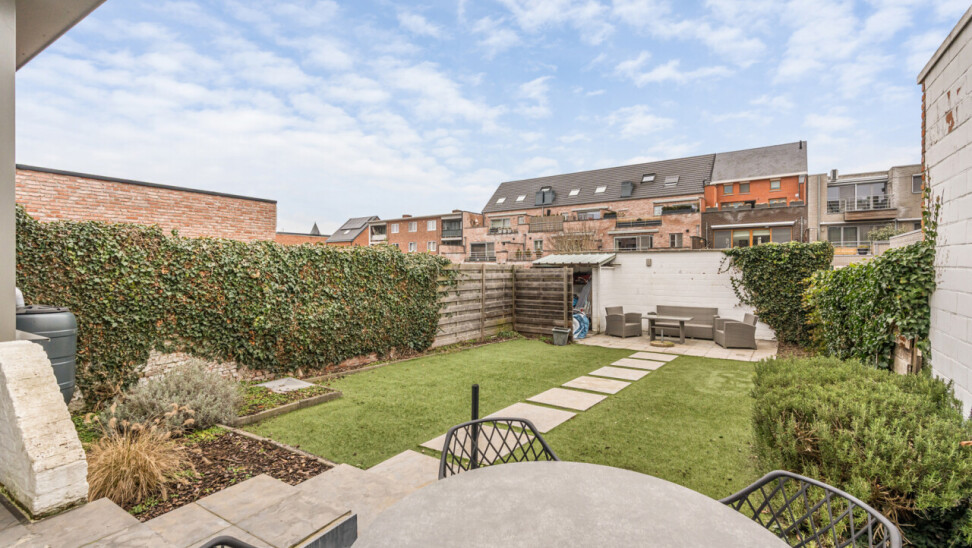 Zowel vanuit de keuken als de leefruimte is er verbinding met de aangelegde tuin. Twee gezellige terrasjes en de aangelegde borders maken het hier aangenaam vertoeven.