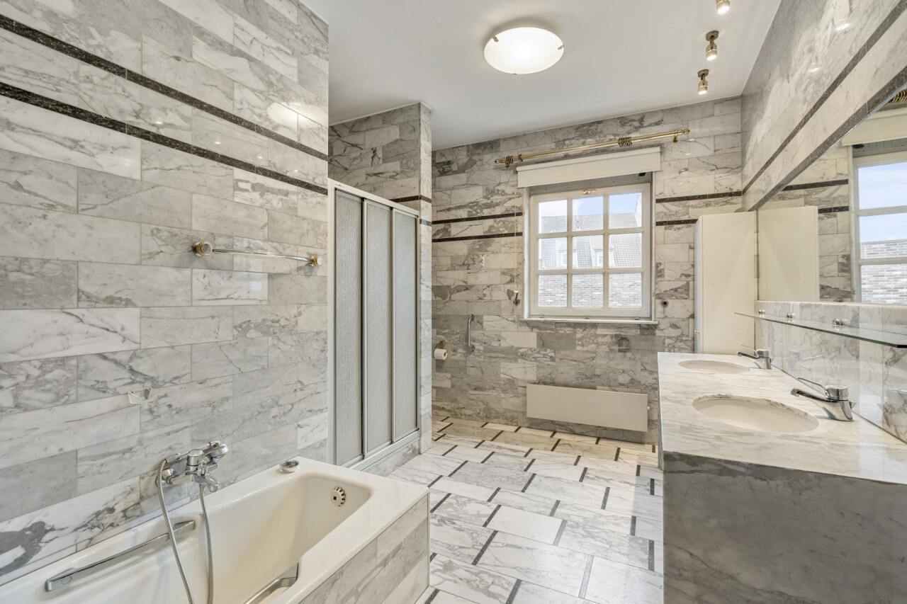 Een gelijkvloerse slaapkamer met ensuite badkamer (douche, bad, toilet en dubbele lavabo) vindt u eveneens terug op het gelijkvloers.