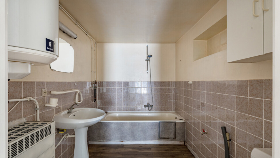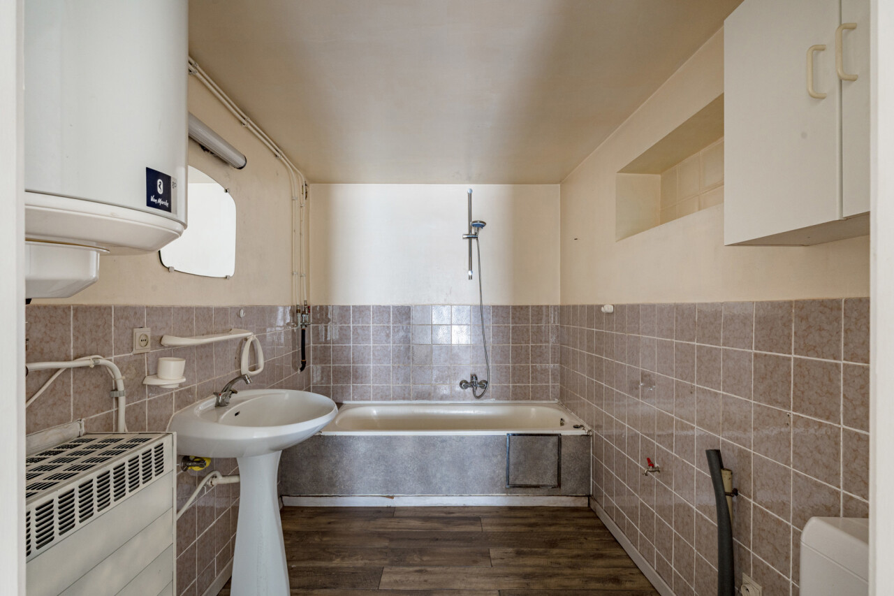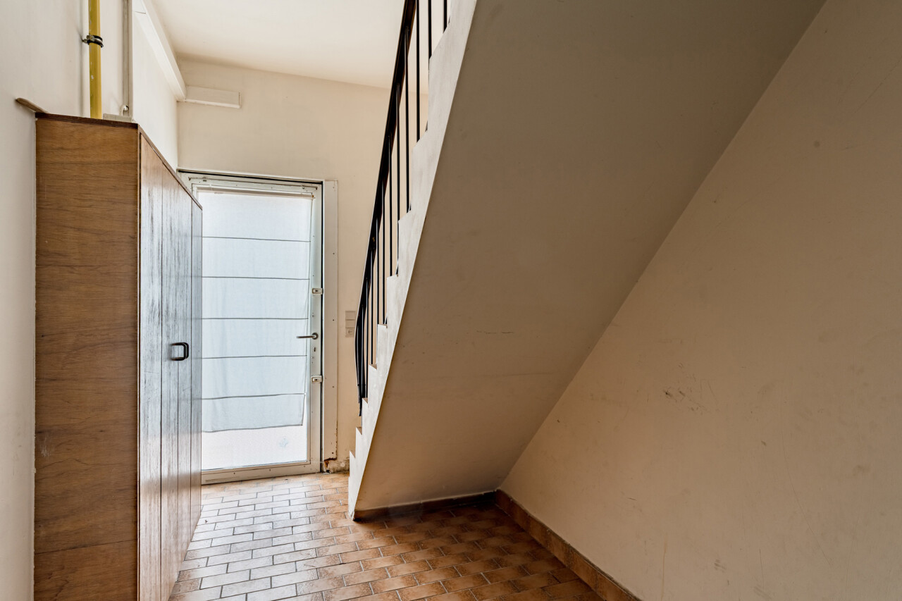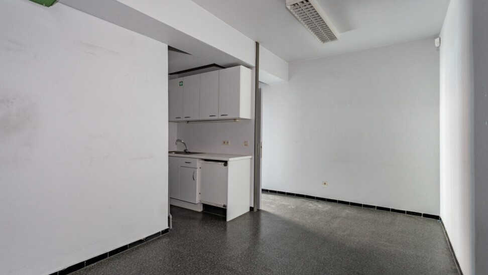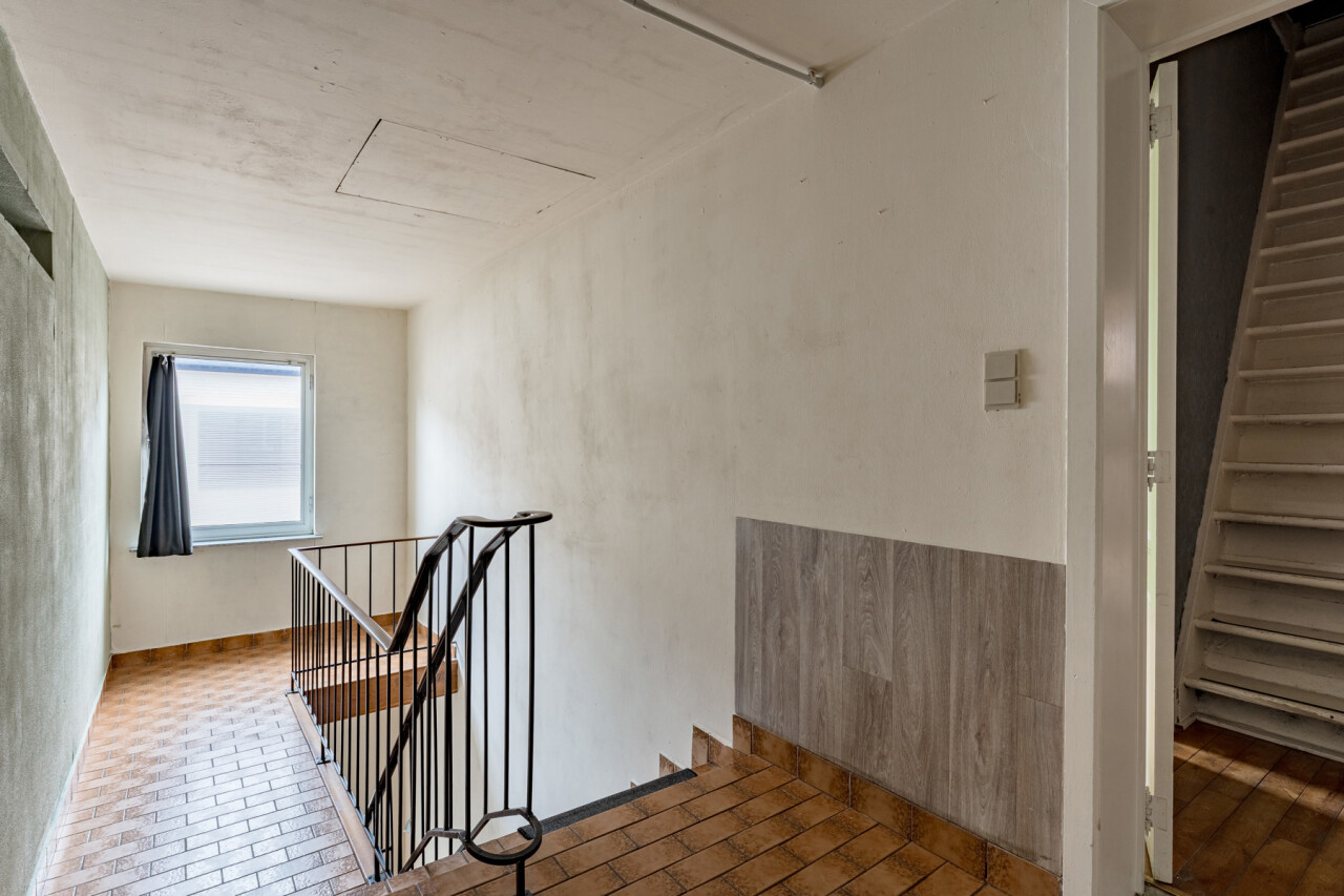 Het gelijkvloers vraagt een opfrissing, maar biedt hierdoor net de mogelijkheid om het volledig naar eigen smaak en professionele noden in te richten. De commerciële ruimte is praktisch ingedeeld en beschikt over een toog, keukenruimte, berging en toegang tot een kelder.