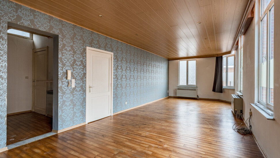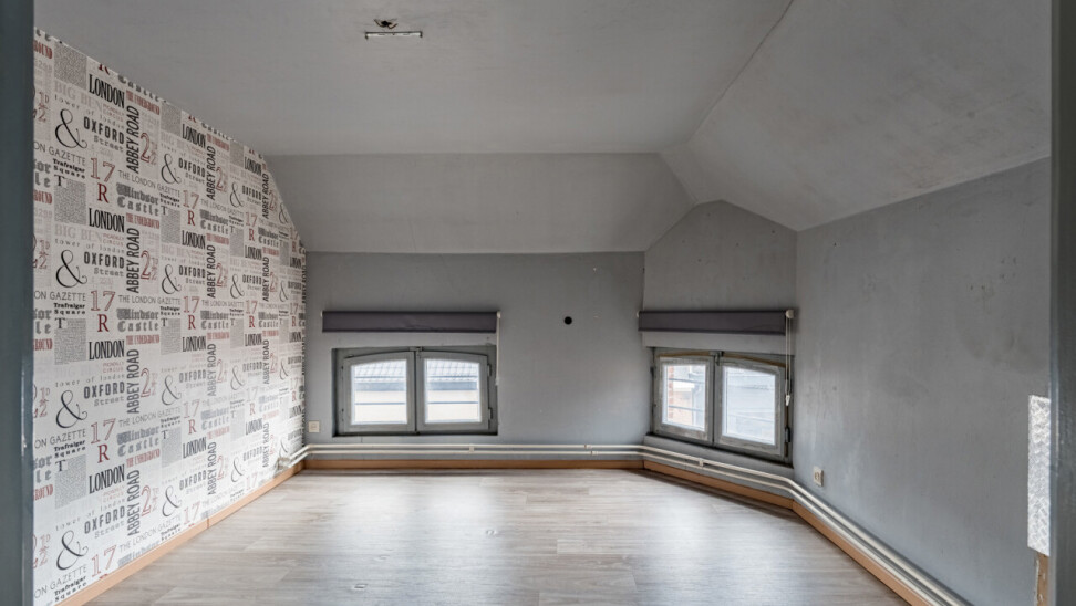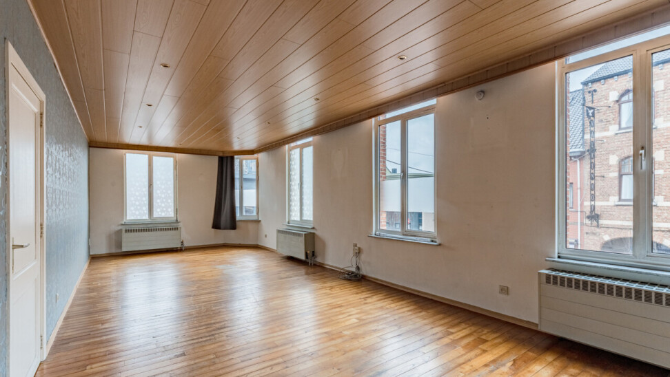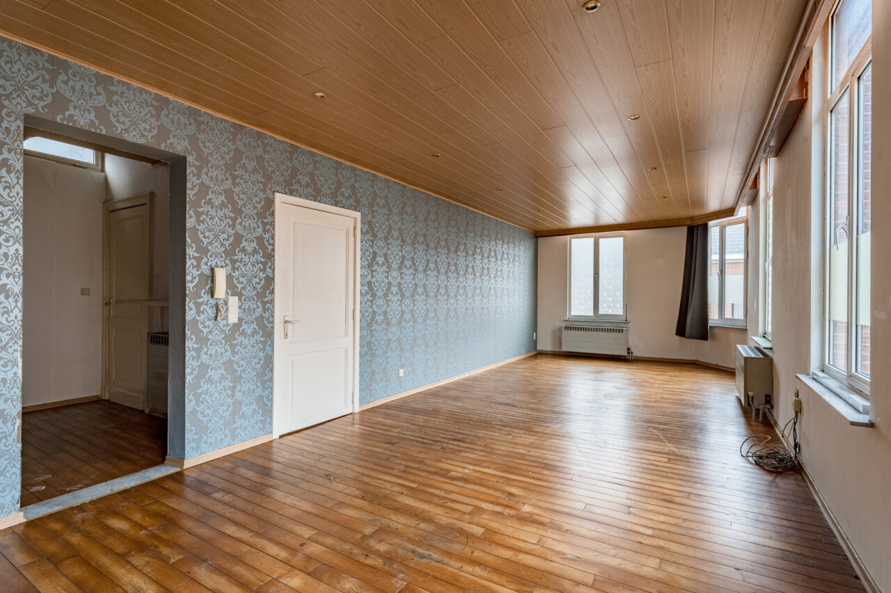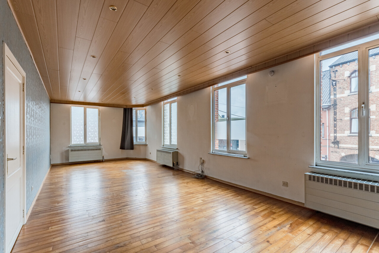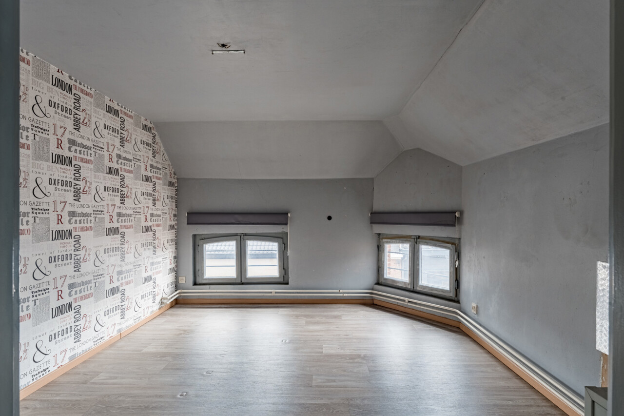 Boven het handelspand bevindt zich een ruim appartement, toegankelijk via een aparte inkom. Dit appartement strekt zich uit over de eerste en tweede verdieping en omvat drie volwaardige slaapkamers, een keuken, een badkamer met ligbad, een bijzonder ruime en lichtrijke leefruimte met hoge plafonds, evenals een extra zolderruimte.