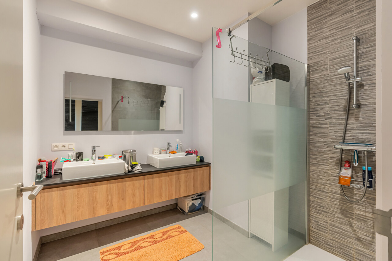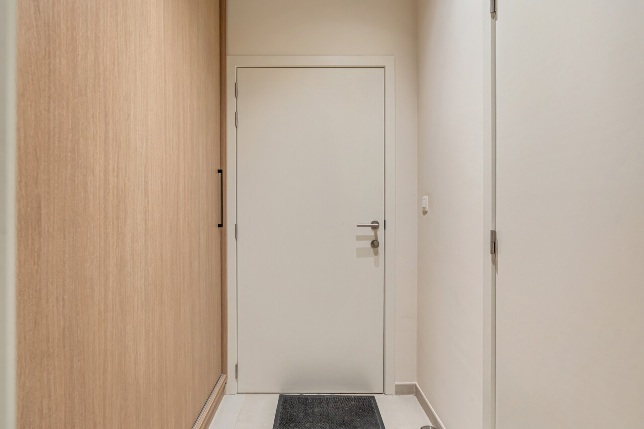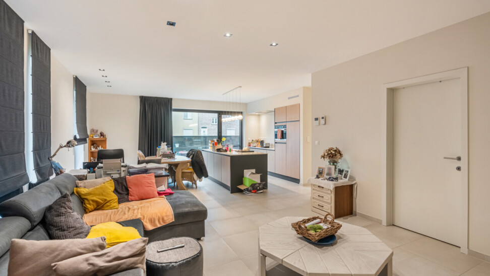 Het appartement beschikt over een lichtrijke leefruimte met open, volledig ingerichte keuken, 2 volwaardige slaapkamers, een apart toilet, een badkamer en een berging met aansluiting voor wasmachine en droogkast.
