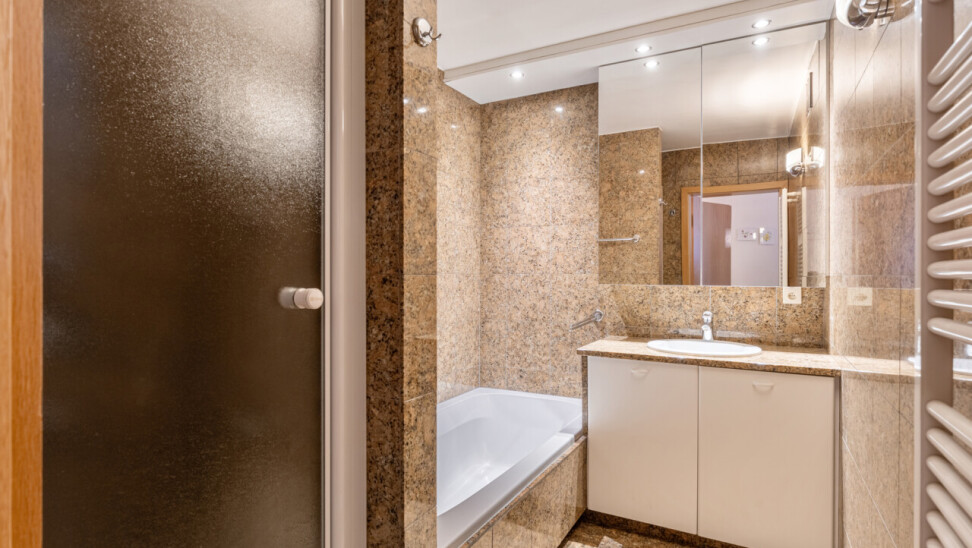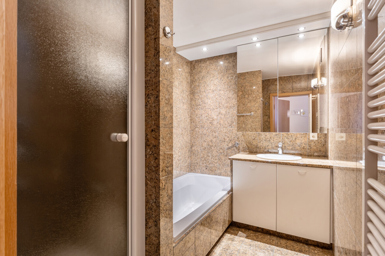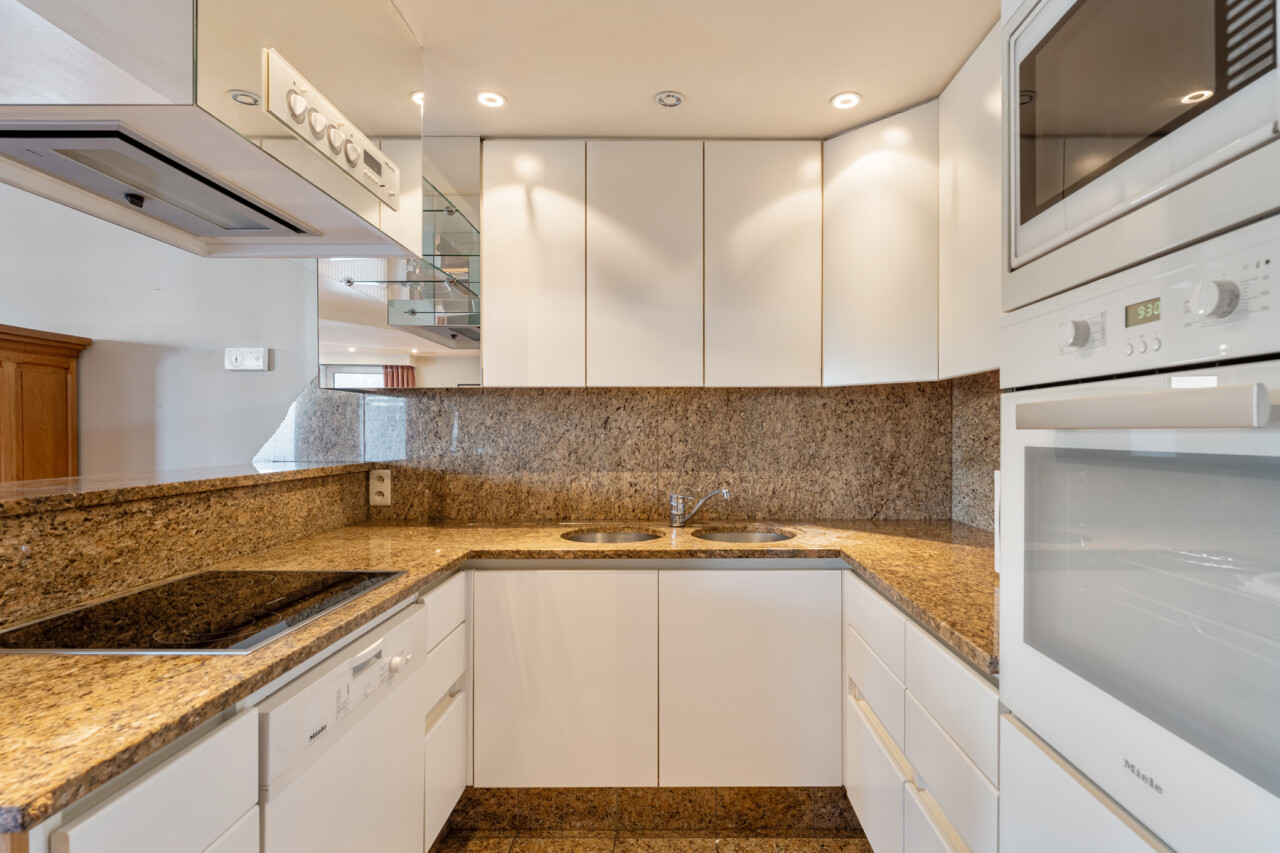Het appartement zelf biedt een lichtrijke leefruimte met een volledig ingerichte open keuken, drie volwaardige slaapkamers, een apart gastentoilet en een badkamer met ligbad. Daarnaast is er een praktische berging met aansluiting voor wasmachine en droogkast.