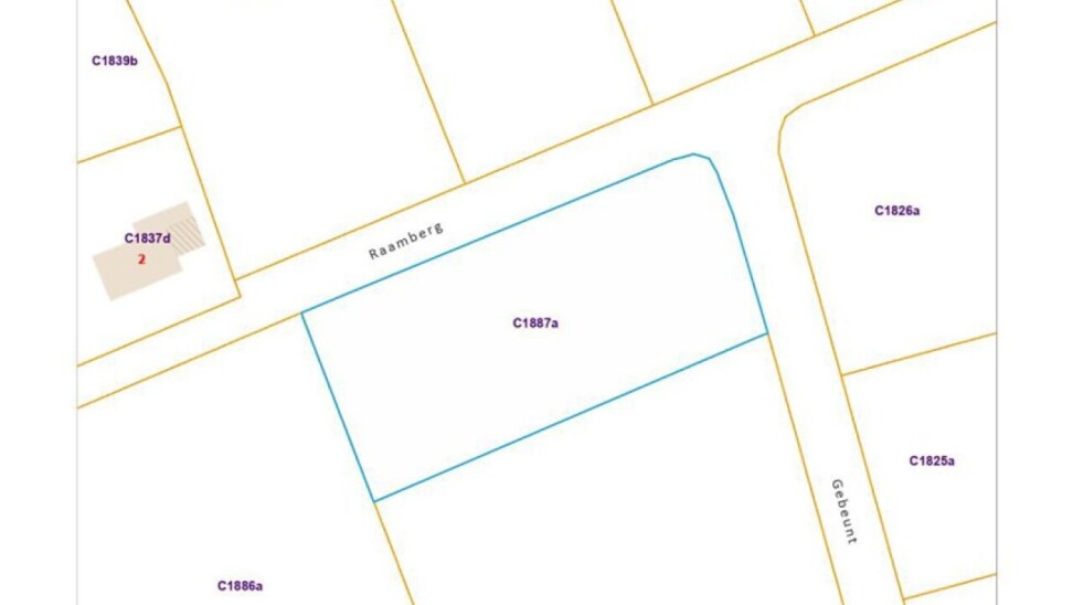Het perceel ligt op de hoek van de Raamberg met Gebeunt en is daardoor vlot bereikbaar.