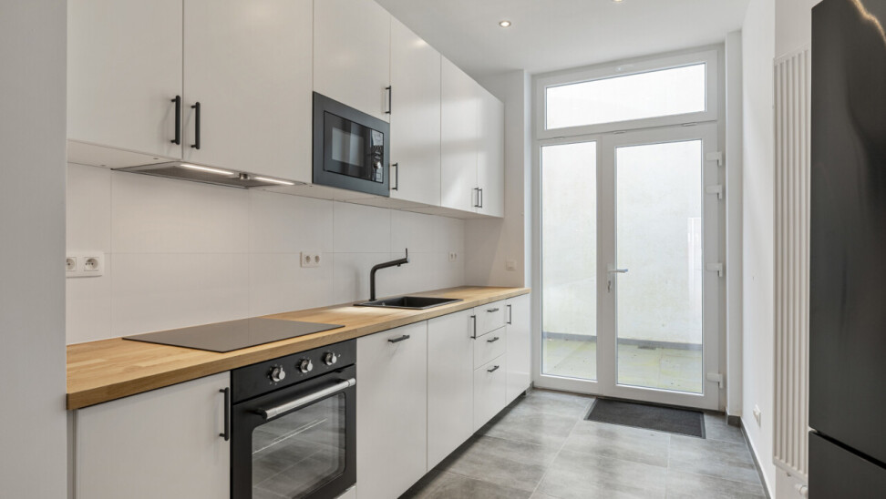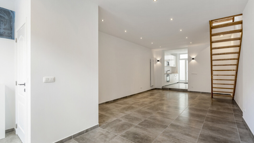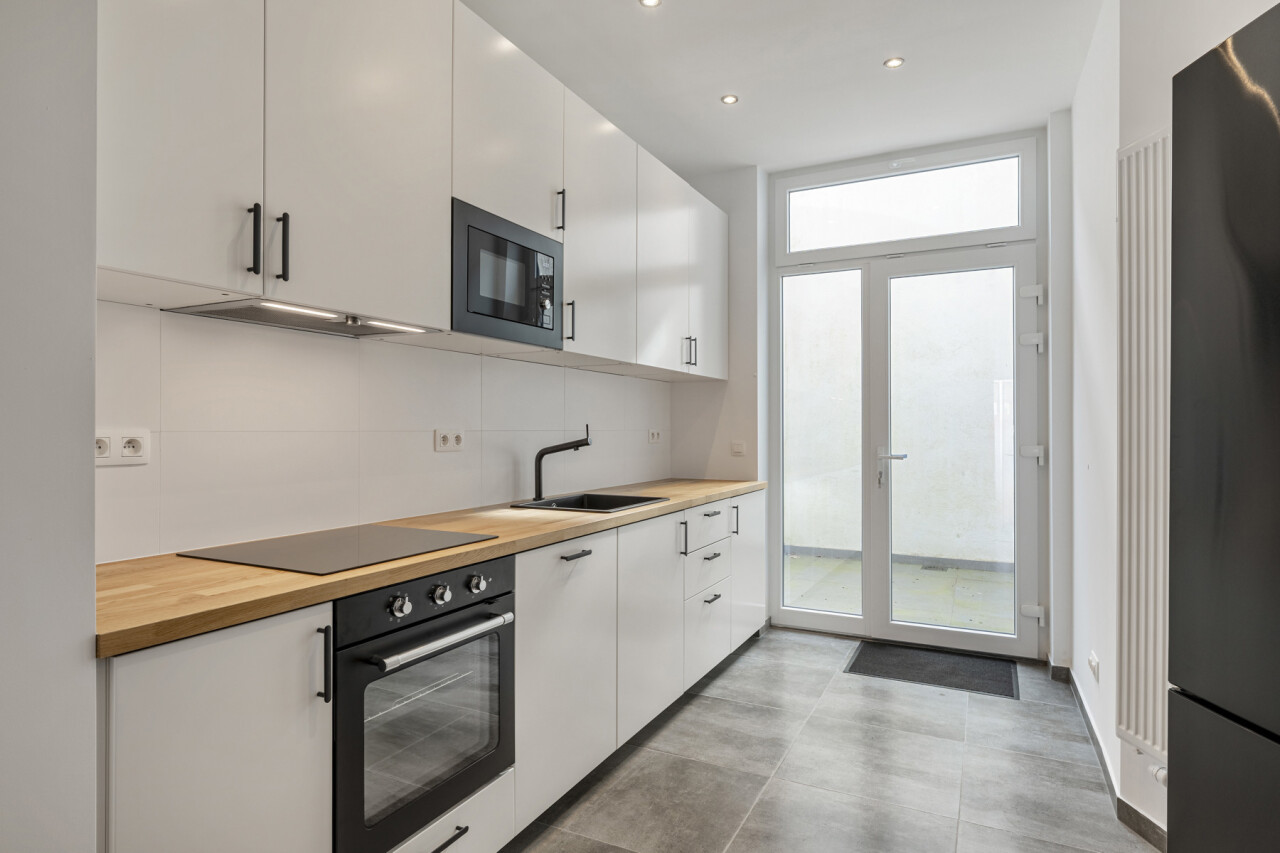 Gelijkvloers: Ruime en lichtrijke leefruimte met een splinternieuwe, open keuken en een klein stadstuintje – ideaal voor gezellige avonden met vrienden en familie.
