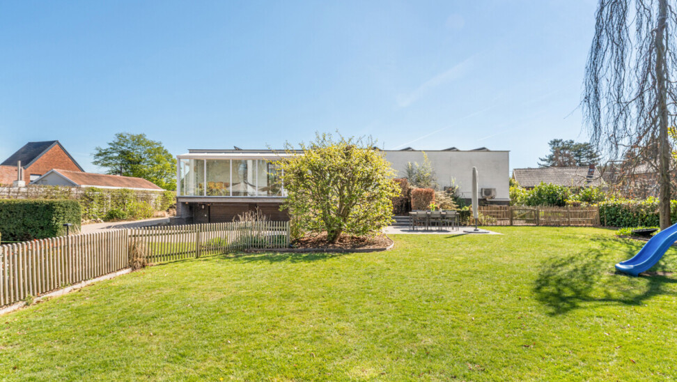 Het betreft een zeer ruime, gelijkvloerse villa van 205m² (excl. kelder) op een prachtig breed perceel van 1595m² met maar liefst 30m breedte aan de straat. Dankzij de doordachte indeling en architectuur baadt de woning in het licht.