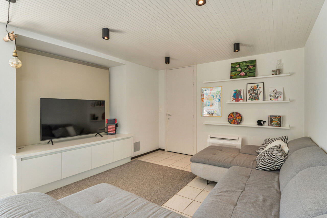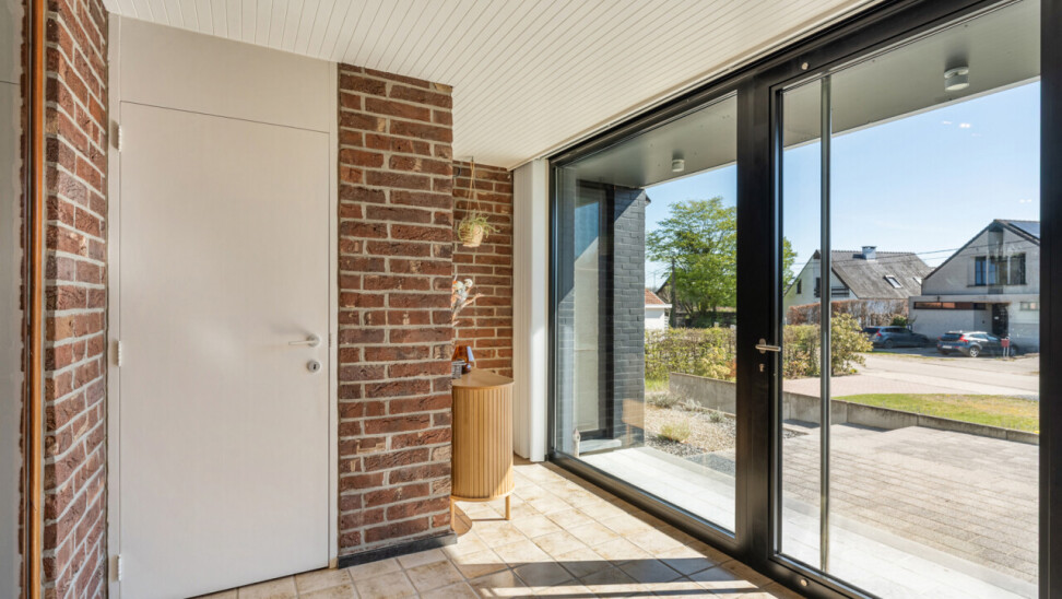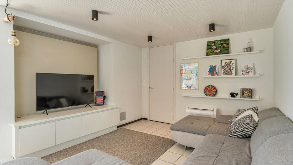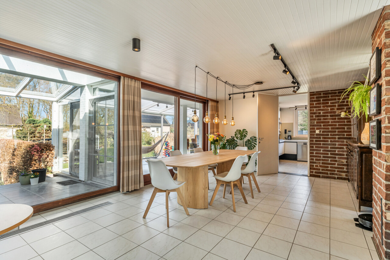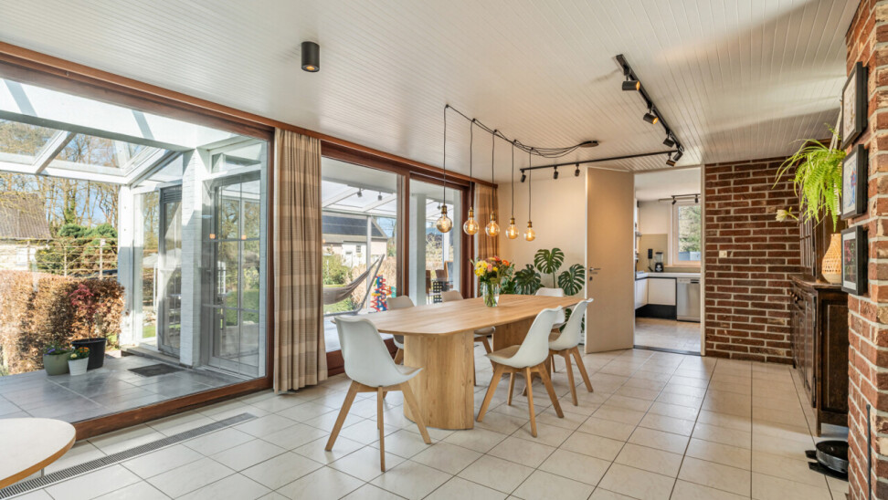 Via de ruime inkomhal met gastentoilet betreden we de woning. Deze biedt toegang naar de leefruimte dewelke bestaat uit een bureau, zit-en eetgedeelte. Achteraan is er een tuinkamer die zowel vanuit de leefruimte als keuken toegankelijk is. Een heerlijke plek om in de tussenseizoenen te vertoeven. De keuken bevindt zich rechts in de woning en is volledig uitgerust. De kleine berging en vervolgens de trap naar de kelder bevinden zich naast de keuken.