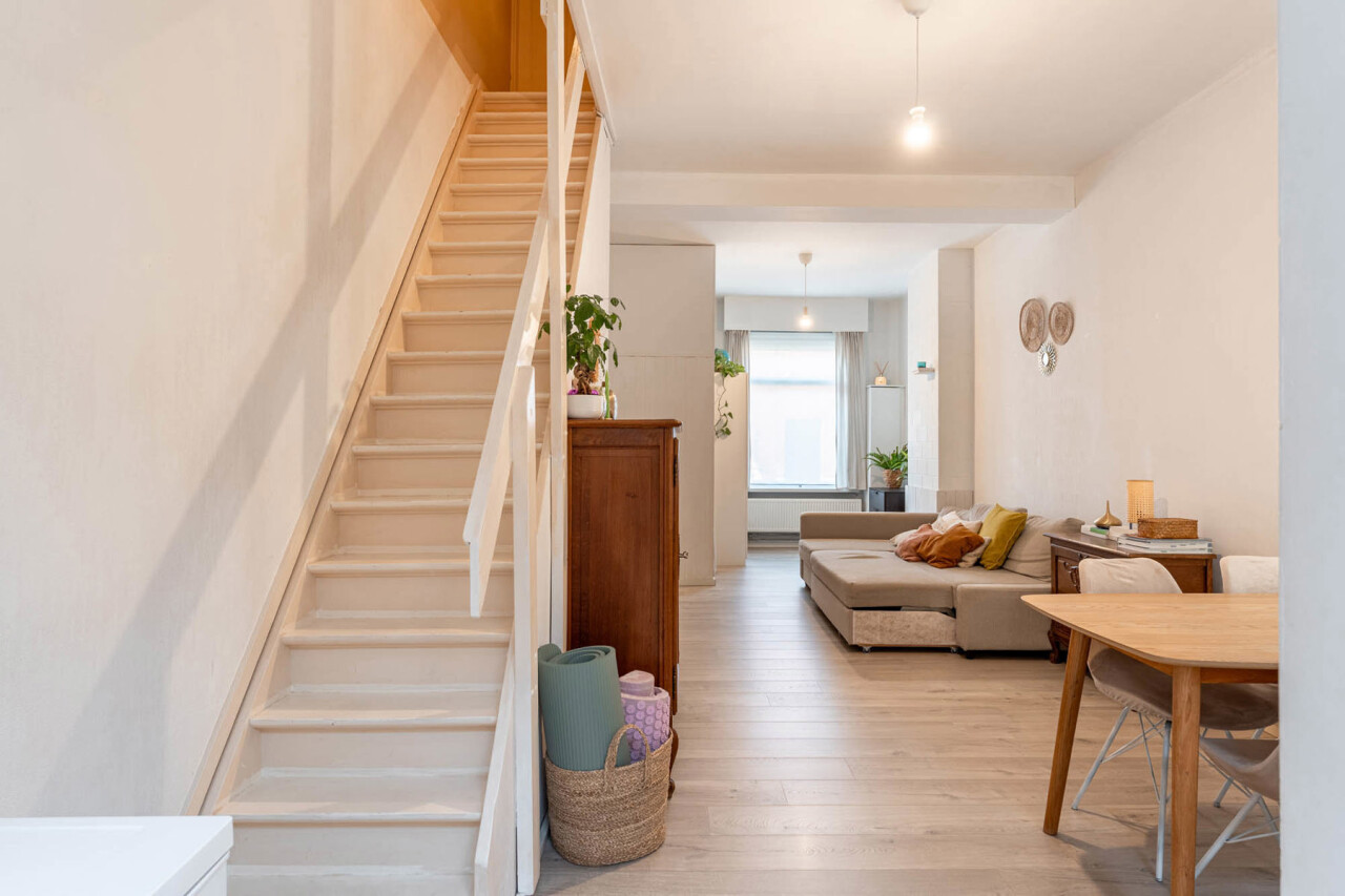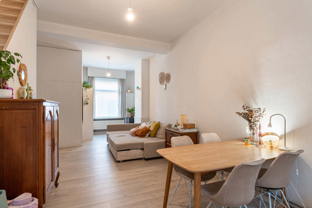 Instapklare, gezellige stadswoning met o.a. 2 slaapkamers, tuin met tuinhuis en handige servitude. Centrale ligging op 2 min. wandelen van zowel station, winkelstraat als scholen.