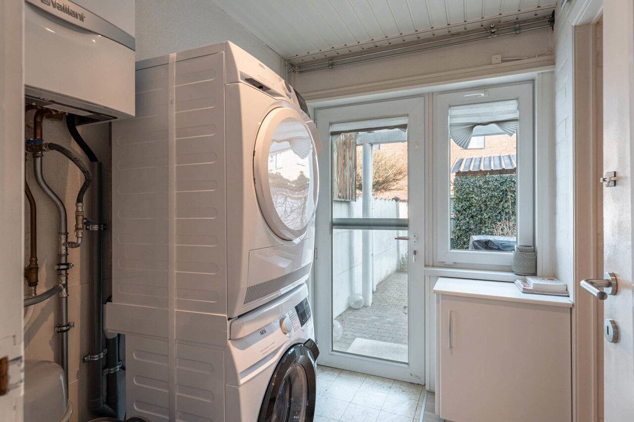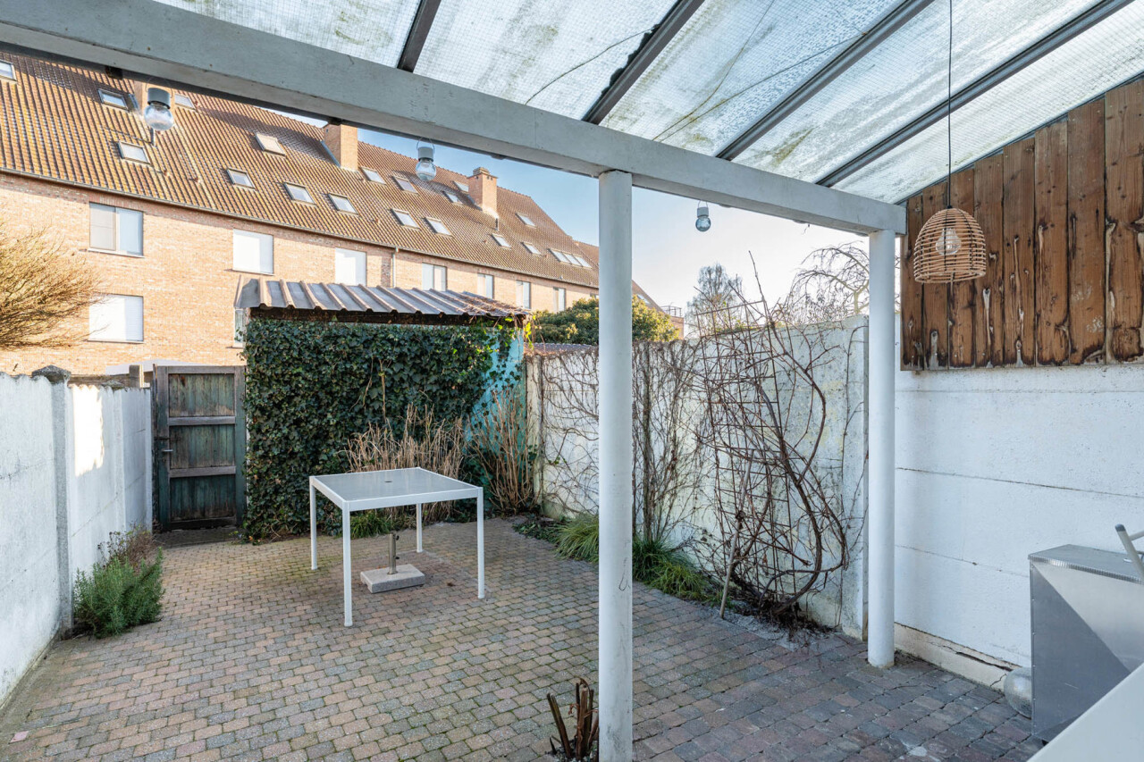 Buiten is er een aangename stadstuin met tuinhuisje. Een handige servitude zorgt ervoor dat vuilnisbakken en fietsen niet door de woning moeten. Daarnaast is er een praktische kelder die extra opslagruimte biedt.