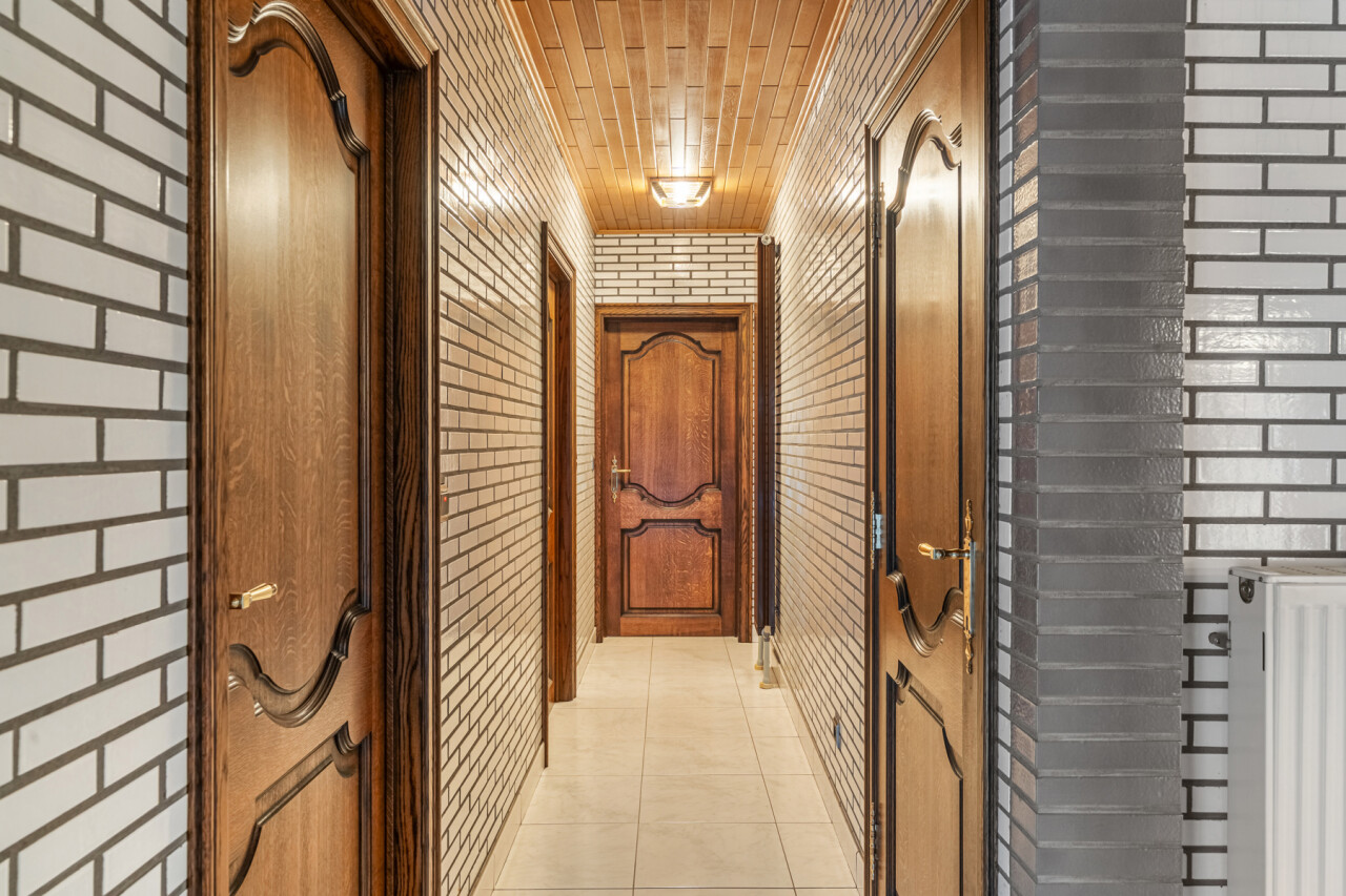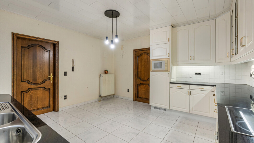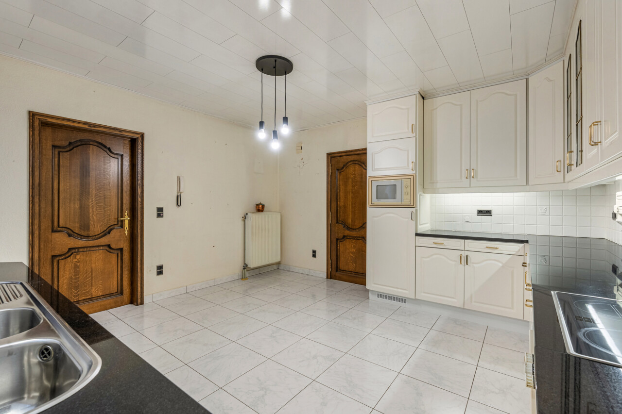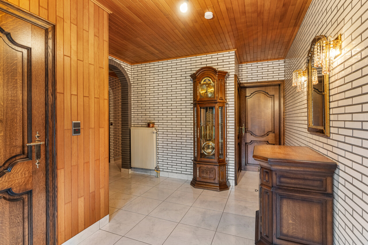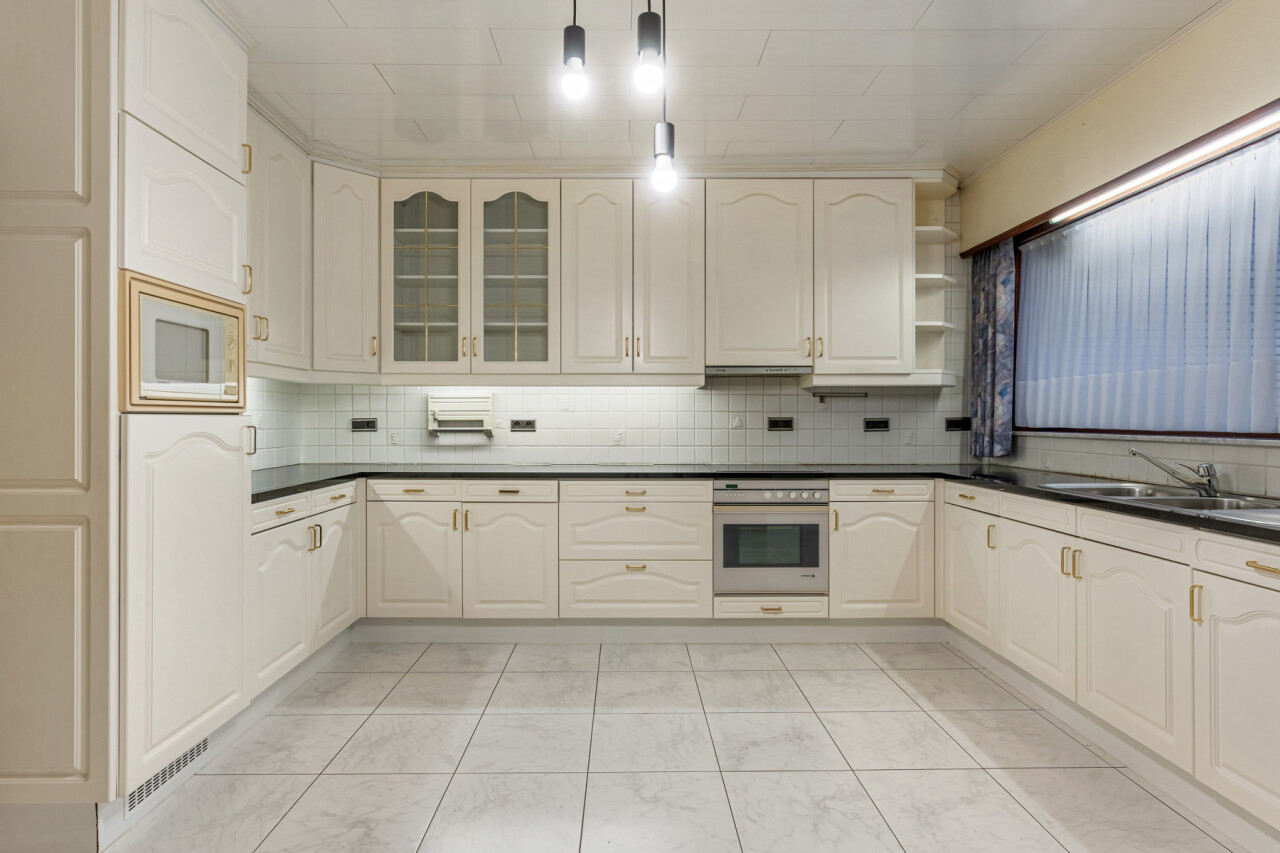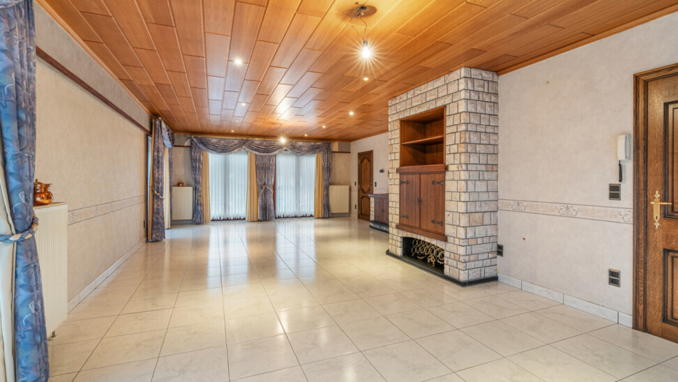 Via de verzorgde inkomhal met gastentoilet betreden we de woning. De lichtrijke woonkamer geniet van grote raampartijen en is afgewerkt met een mooie stenen vloer die zorgt voor een warme en aangename sfeer. Op het gelijkvloers bevinden zich verder een ruime keuken, een badkamer met een royaal ligbad en drie volwaardige slaapkamers.