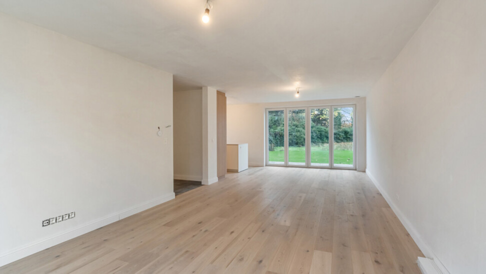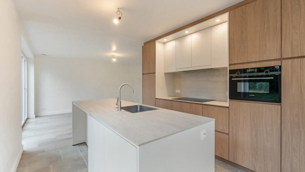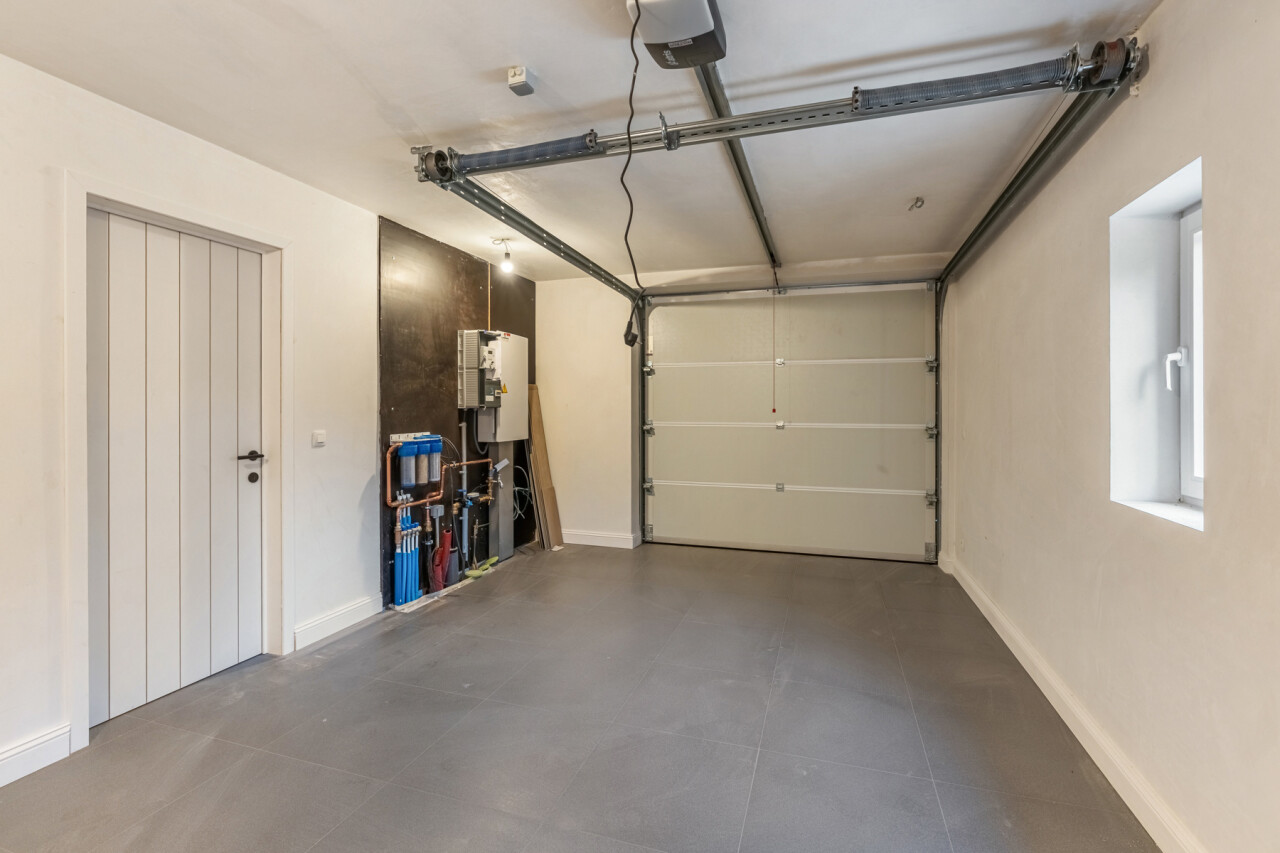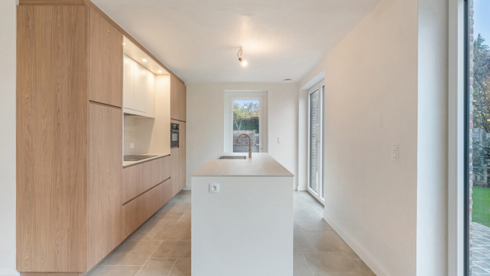 Op het gelijkvloers kom je binnen via een ruime inkomhal met gastentoilet. De lichtrijke leefruimte met warme parketvloer biedt een mooi zicht op de tuin en sluit naadloos aan op de hoogwaardig afgewerkte open keuken met kookeiland, combi-oven, inductiekookplaat, vaatwasser en ingebouwde koelkast. Verder vind je op deze verdieping een praktische technische berging met aansluiting voor wasmachine én een ruime, volledig afgewerkte garage met sectionale poort.