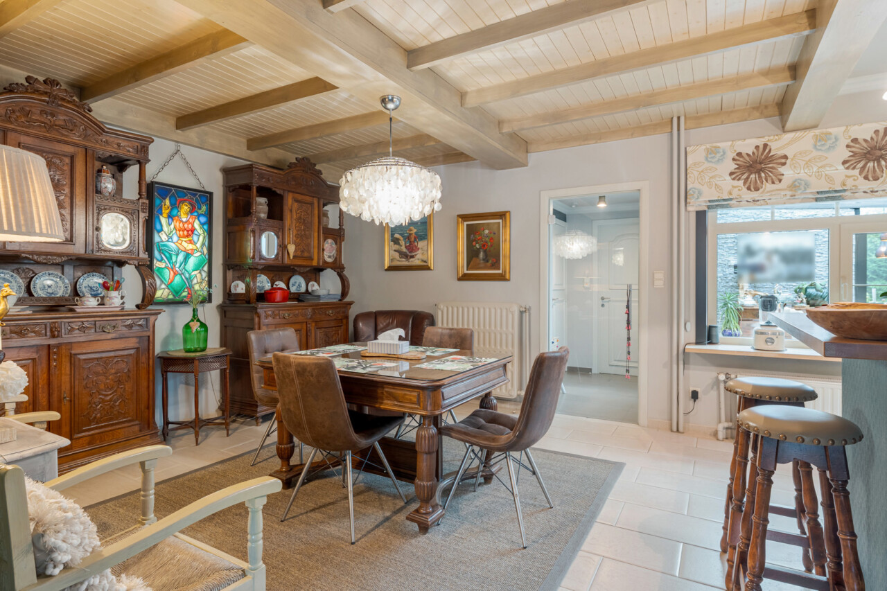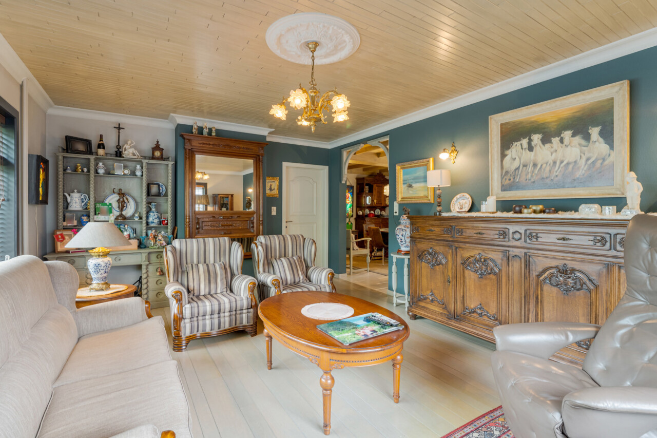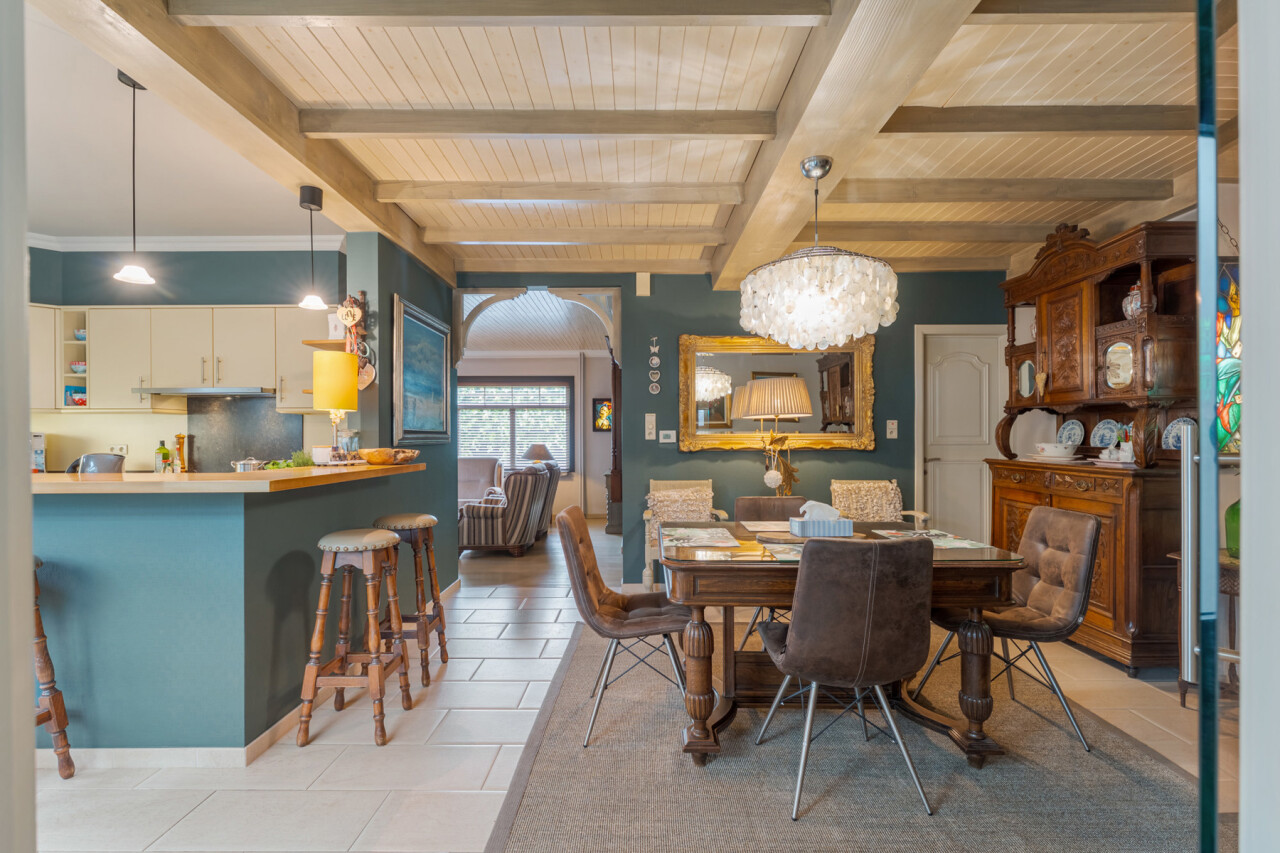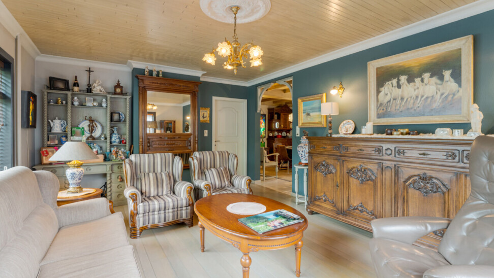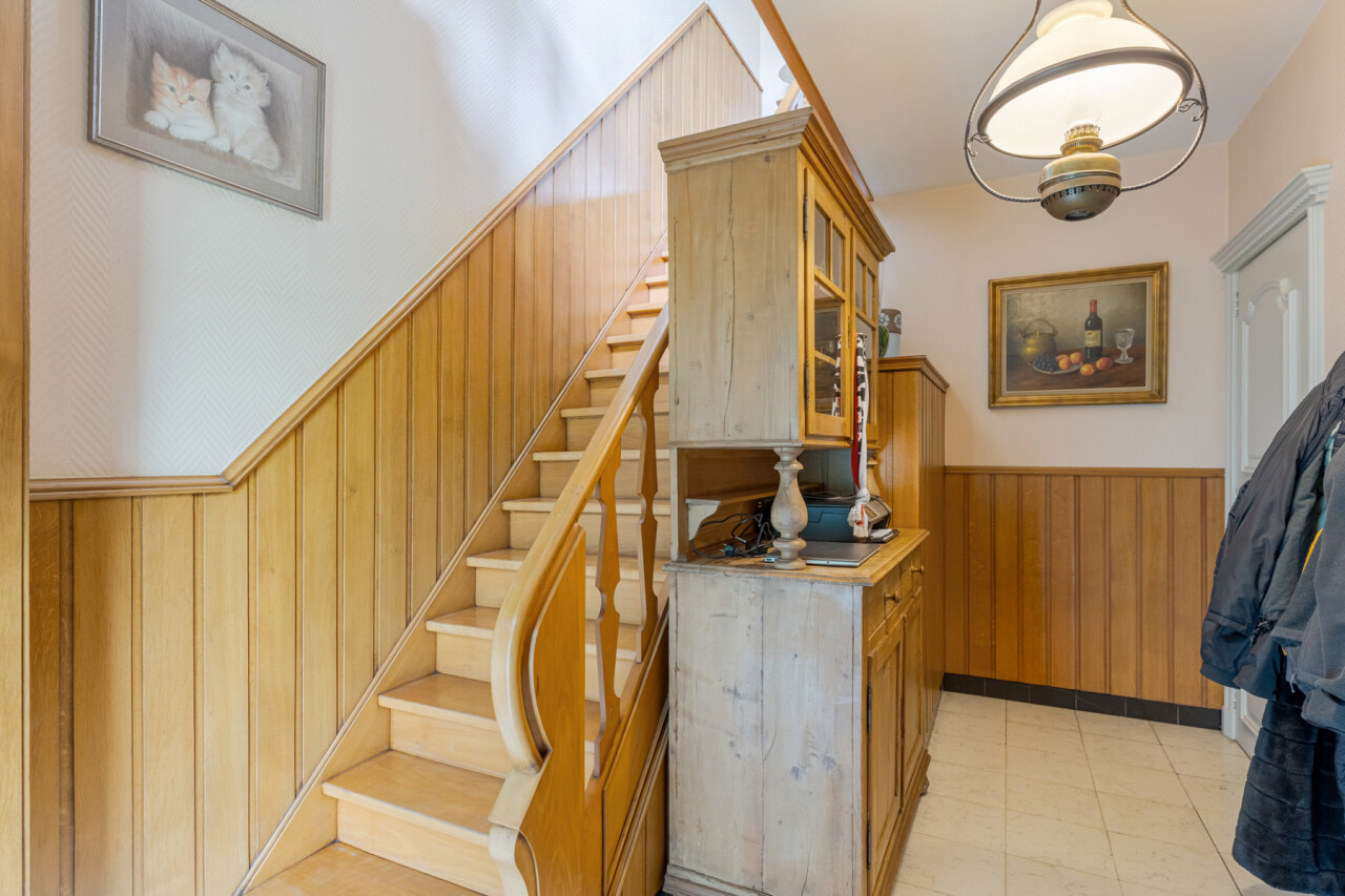 Via de inkomhal is er toegang naar de bijzonder gezellige woonkamer (24 m²) met gashaard. Aansluitend aan de woonkamer is er de volledig geïnstalleerde halfopen leefkeuken (31 m²). Zeer praktisch is de grote aansluitende berging/wasplaats met ingemaakte kasten en verhoog voor was-en droogkast.