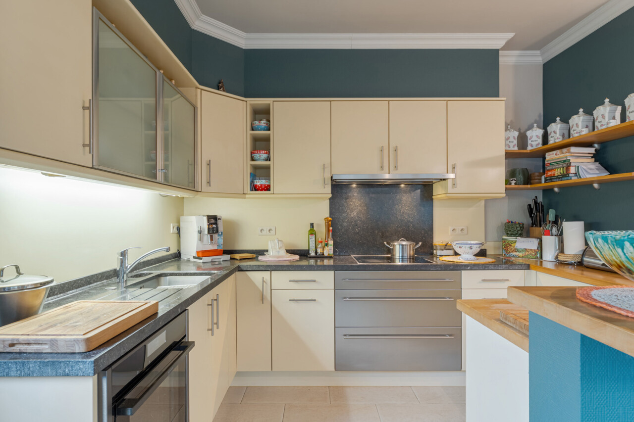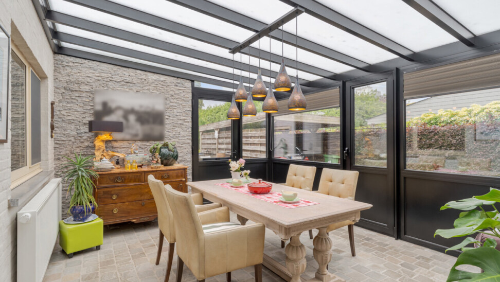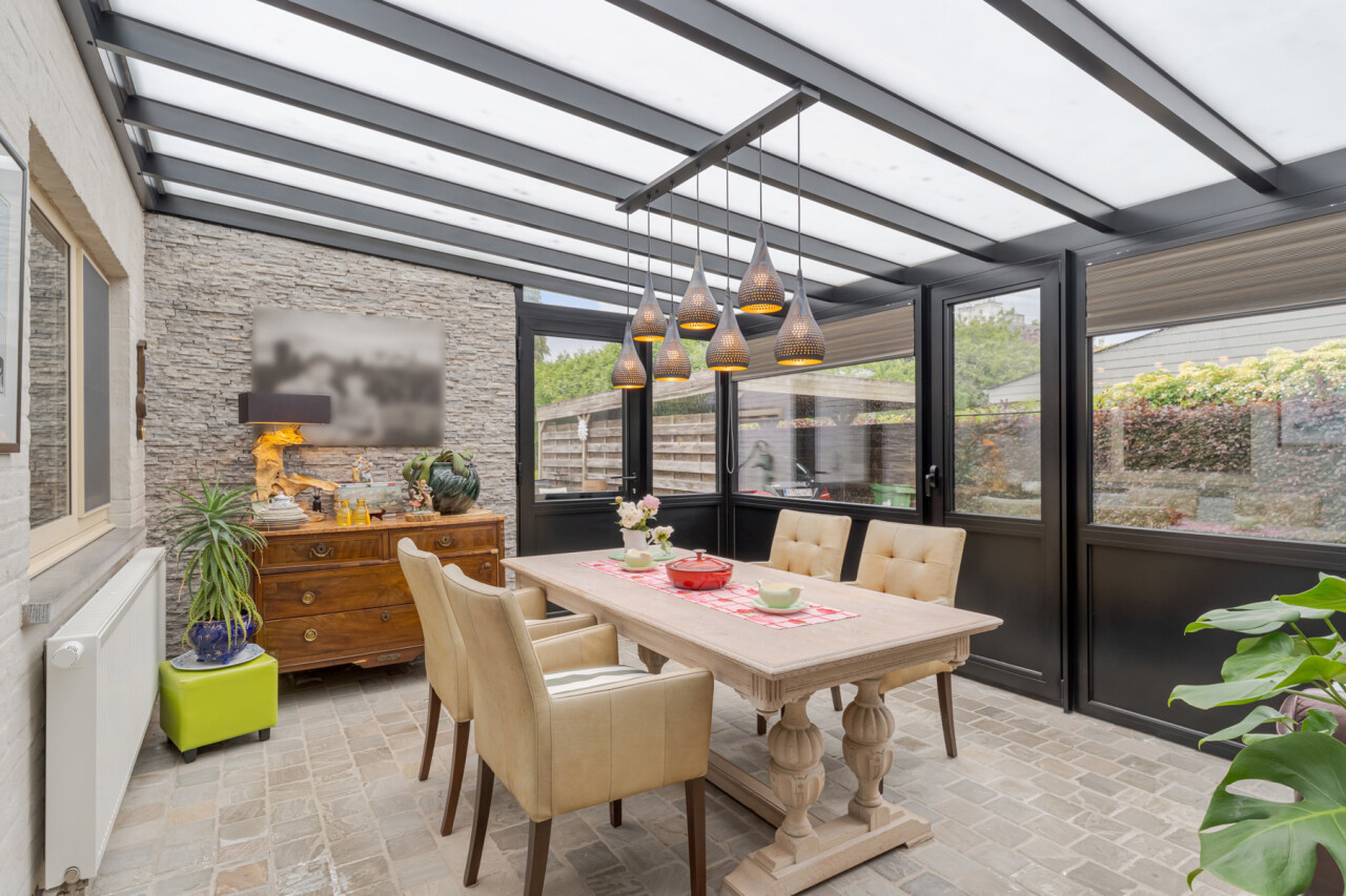 De leefruimte geniet van enorm veel natuurlijk licht dankzij de grote ramen. Verder is er een ruime veranda van 17 m².