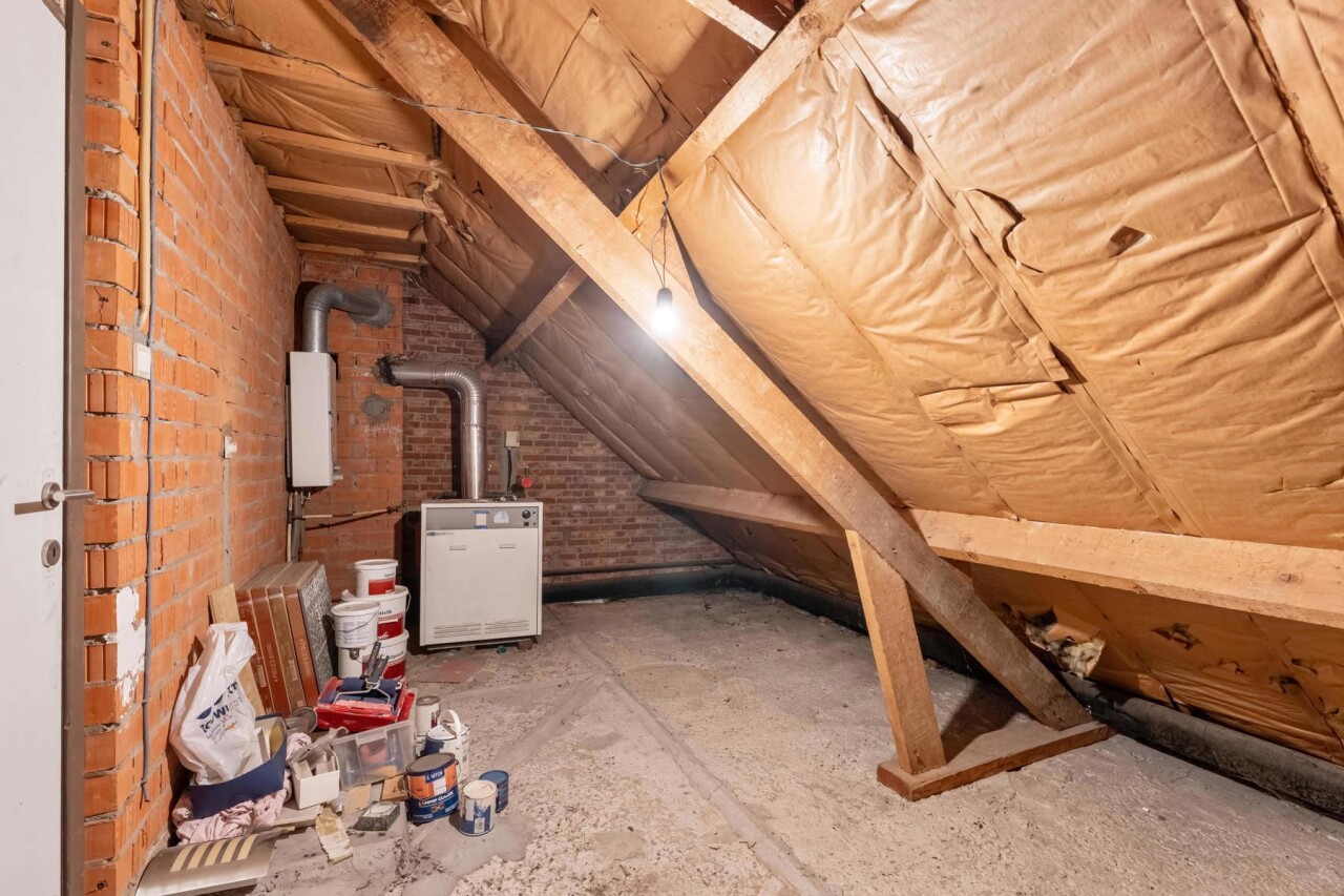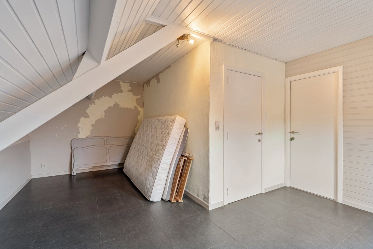 De zolderverdieping is bereikbaar via een vaste trap. Hier is een verder af te werken, 4de slaapkamer en zolderkamer aanwezig.
