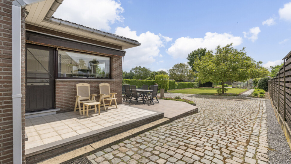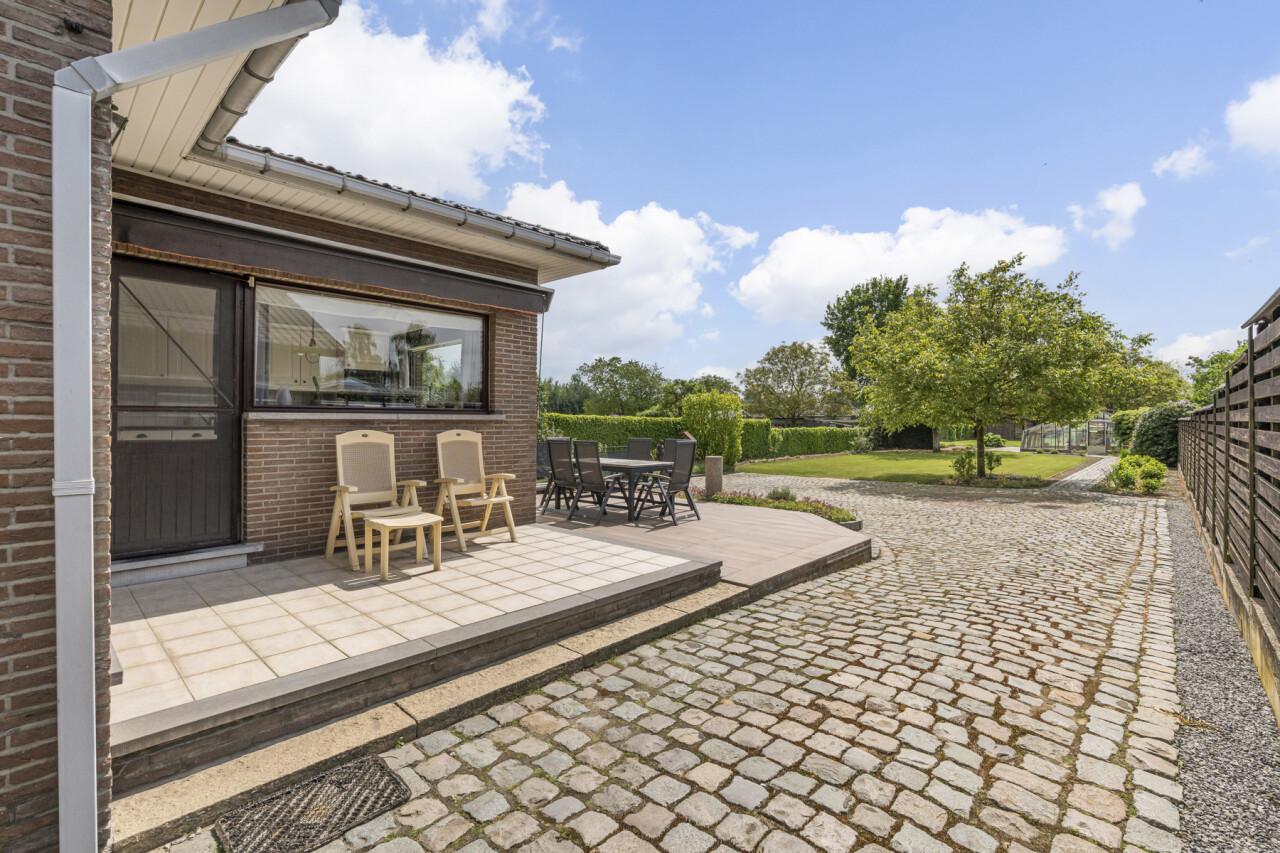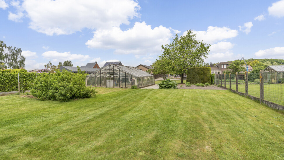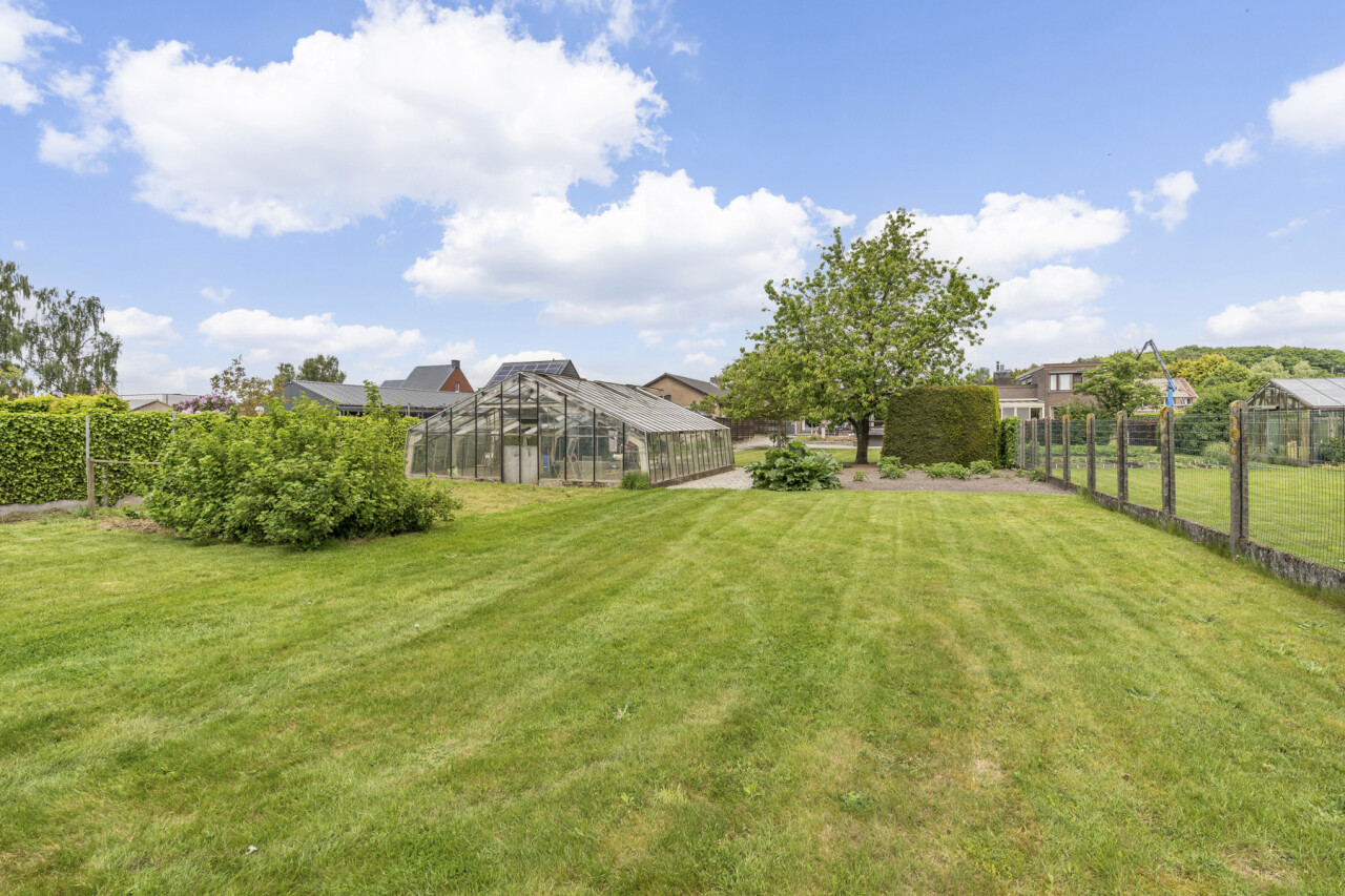De tuin is netjes aangelegd en geniet van een zonnig terras. Er is een serre, carport voor mobilhome, en extra werkplaats aanwezig in de tuin.