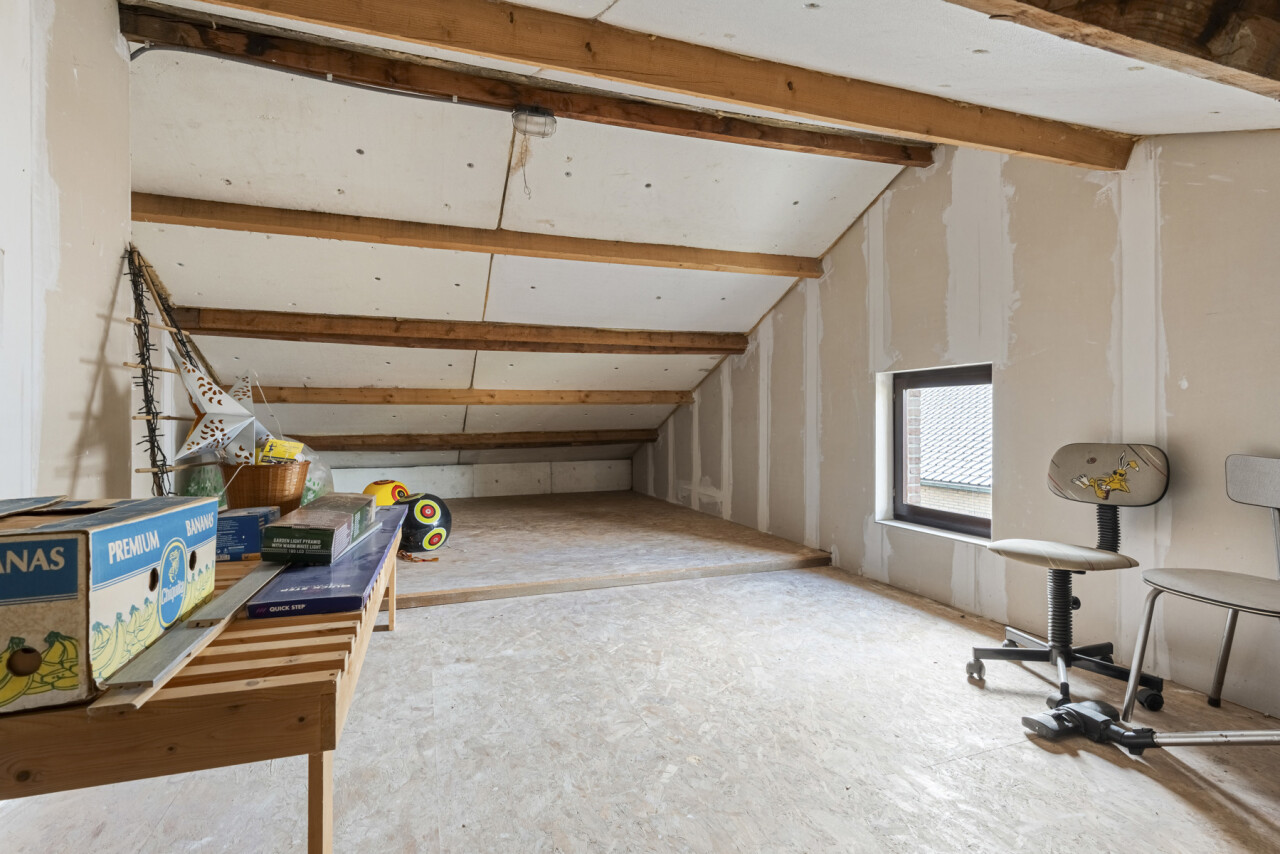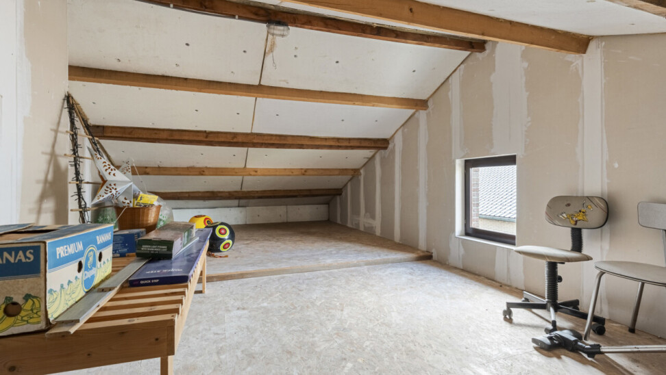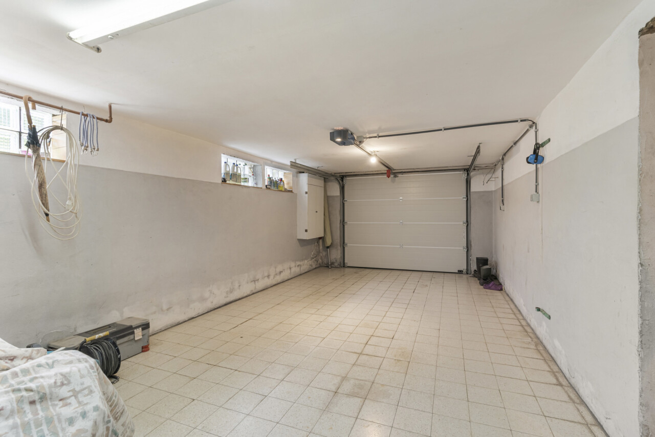 De woning is volledig onderkeldert (150 m²) en hierin zit ook de inpandige garage met automatische poort. Een handige, vaste trap brengt ons dan weer naar de zolder. Deze is netjes voorzien van beplanking en afgewerkt met gyproc wanden waardoor dit een uitstekende stockageplaats maakt.